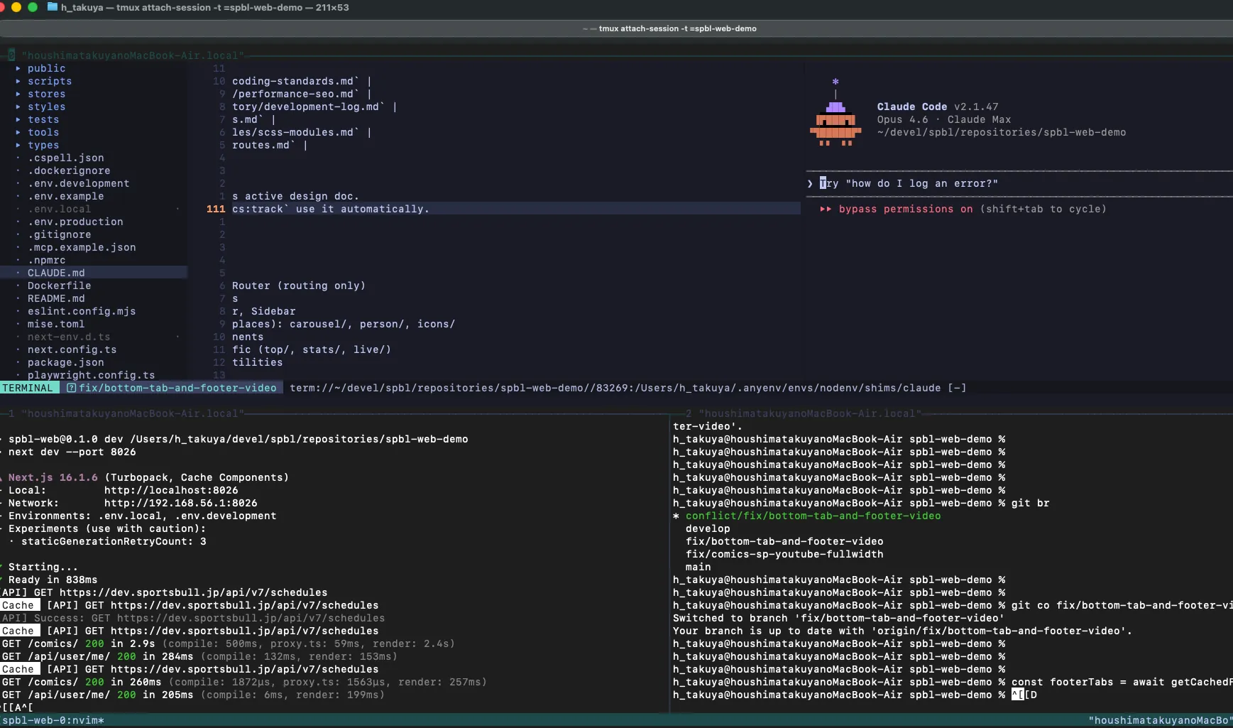 Neovim + Claude Code + tmux。最軽量のエディタと、最強のAIエージェントと、柔軟なターミナルマルチプレクサ。この三位一体が、今の自分にとっての最速の構成です。